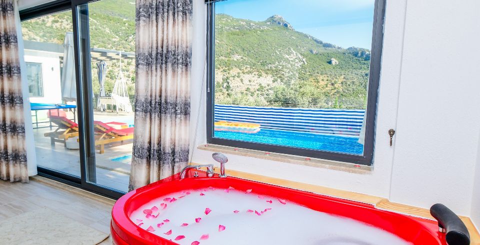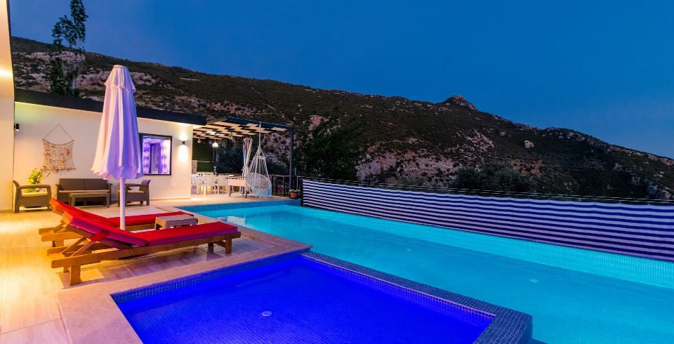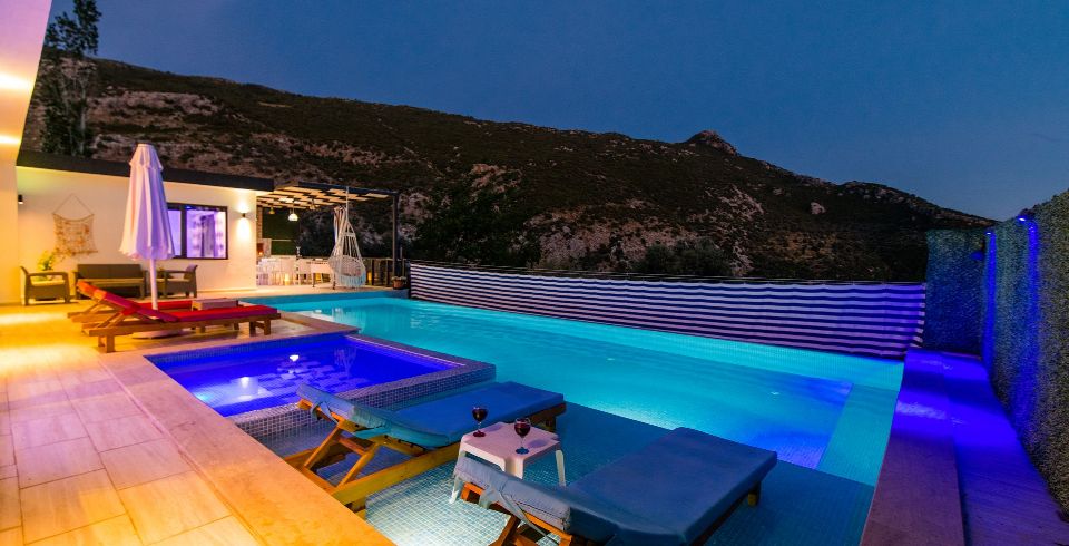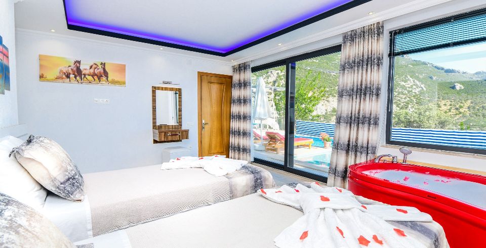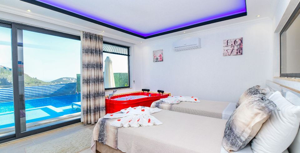 Kalkan İslamlar Mahallesinde bulunan muhafazakar doğa manzaralı villamız 2 yatak odalı olup 4 kişilik konaklama kapasitesine sahiptir. Yeşillikler içerisinde bulunan villamızda şehir hayatının gürültülü atmosferinden biraz uzaklaşıp hem tatil yapmak hem de doğa ile iç içe olmak isteyenlerin hayalidir. Villa içerisinde 1 salon, 1 Amerikan mutfak, 2 adet yatak odası, 2 adet banyo bulunmakta ve 4 kişi konaklama kapasitesine sahiptir. Ayrıca bir yatak odasında jakuzi bulunmaktadır.