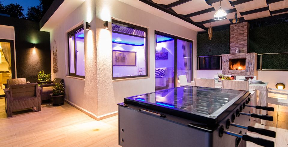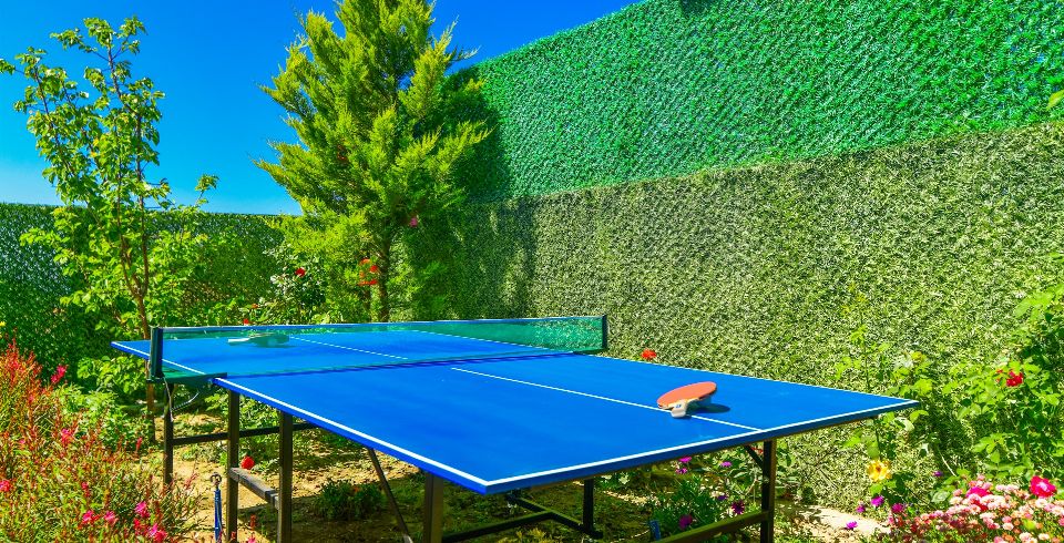 Bahçe : Bahçe içerisinde 6 adet şezlong, güneş şemsiyesi, özel yüzme havuzu, 4 kişilik yemek masası, langırt, salıncak, tenis masası, bahçe mobilyası bulunmaktadır.