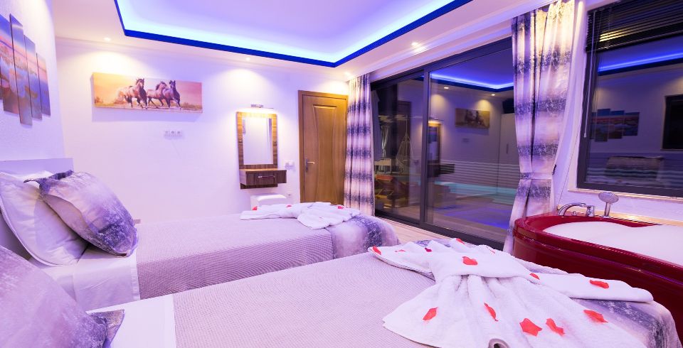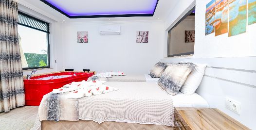 2. Yatak Odası : 2 adet tek kişilik yatak, klima, jakuzi , komodin, makyaj masası bulunmaktadır. Banyo ve tuvalet bulunmaktadır.