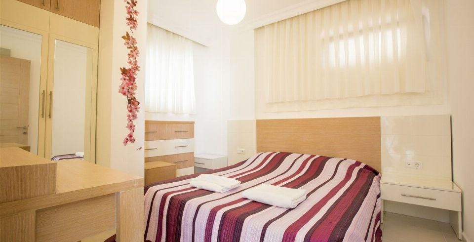 2. Yatak Odası : Çift kişilik yatak, klima, komodin, elbise dolabı, makyaj masası, banyo ve tuvalet bulunmaktadır.