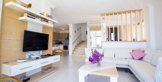 Salon : Villamızı salonunda oturma grubu, klima, yemek masası, uydu alıcı, TV, internet bulunmaktadır.