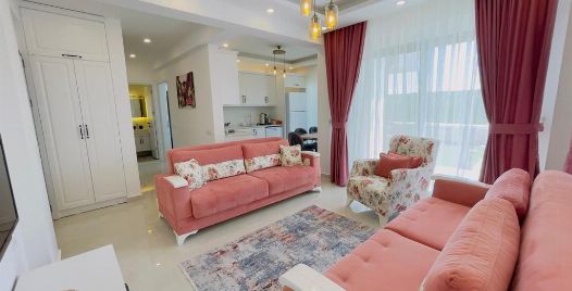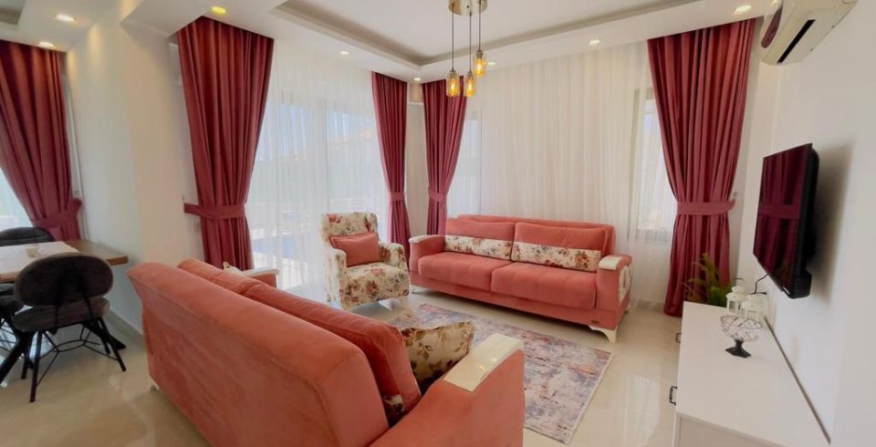 Salon : Salon içerisinde oturma grubu, TV, klima, sehpa bulunmaktadır. Havuz terasına çıkış yapılabilmektedir.
