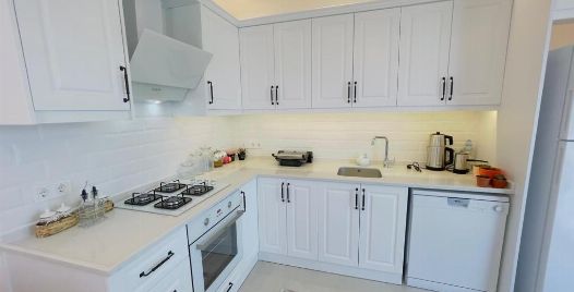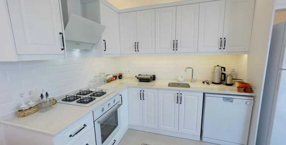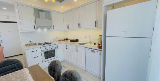 Mutfak : Modern Amerikan mutfak içerisinde 6 kişilik yemek masası, mama sandalyesi, buzdolabı, bulaşık makinası, fırın, ocak, mikrodalga fırın, tost makinası, yemek masası, yemek takımları, çatal ve bıçak takımları, tencere ve tava takımları, bardaklar bulunmaktadır.