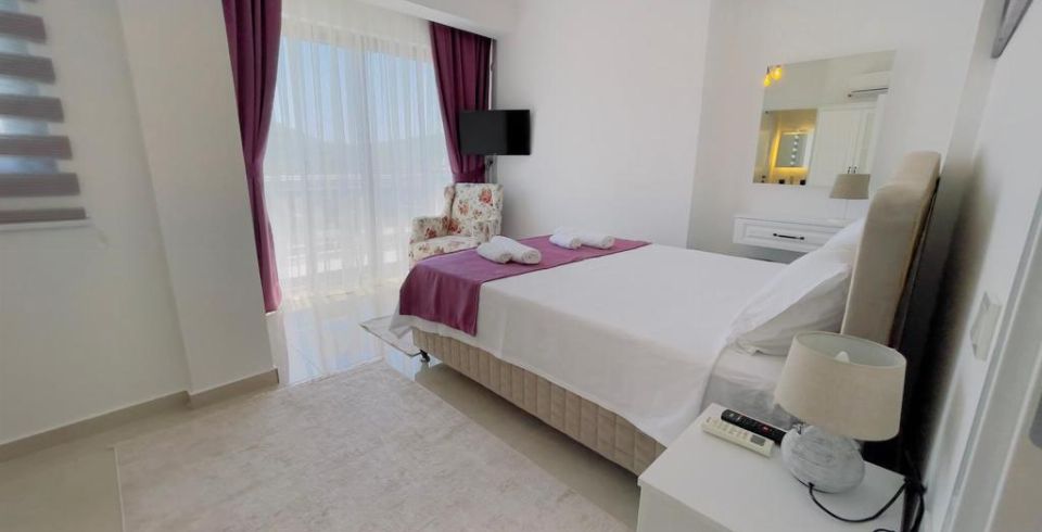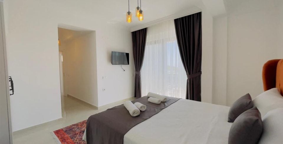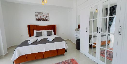 2. Yatak Odası : 1 adet çift kişilik yatak, klima, komodin, elbise dolabı, banyo ve tuvalet bulunmaktadır.