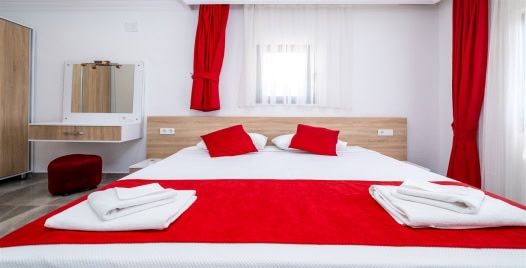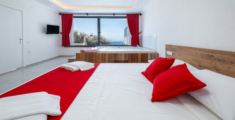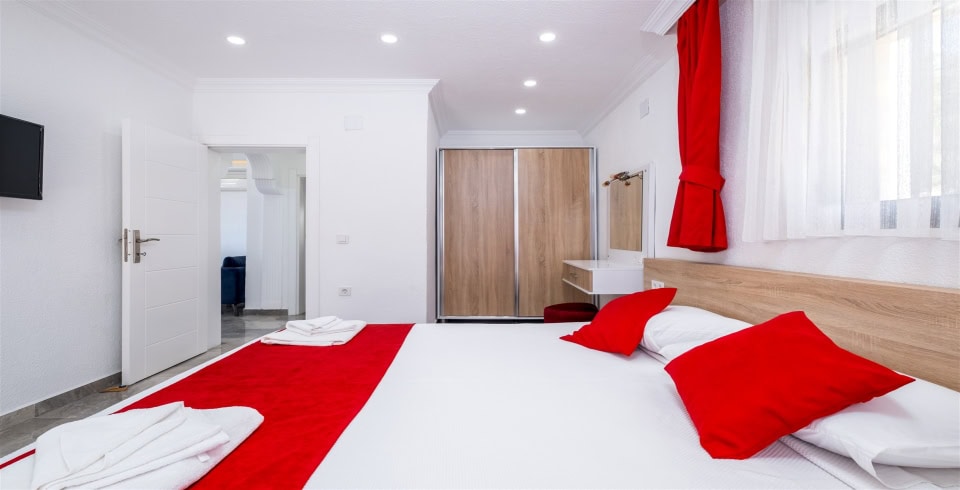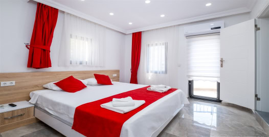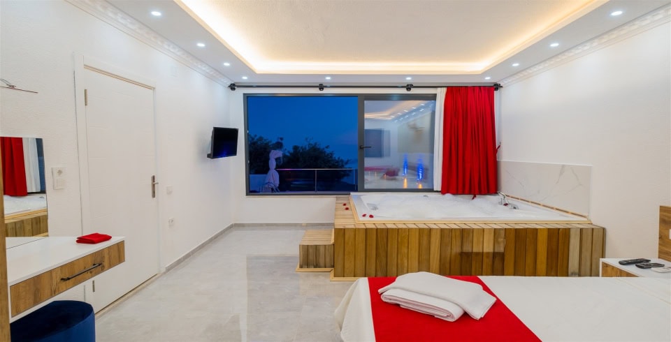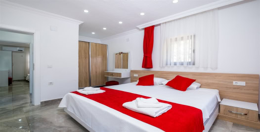 2. Yatak Odası : 1 adet çift kişilik yatak, klima, komodin, elbise dolabı, makyaj masası, TV, jakuzi, banyo ve tuvalet bulunmaktadır.
