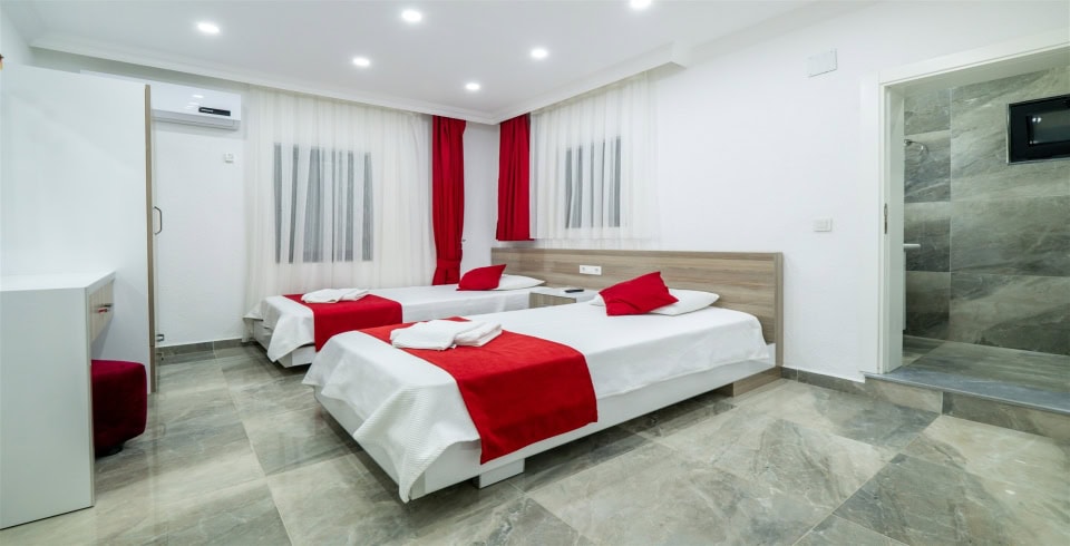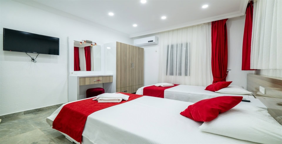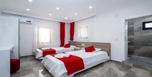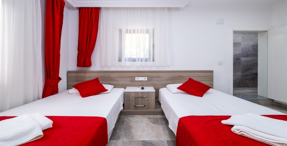 3. Yatak Odası : 2 adet tek kişilik yatak, klima, komodin, elbise dolabı, makyaj masası, TV, banyo ve tuvalet bulunmaktadır.