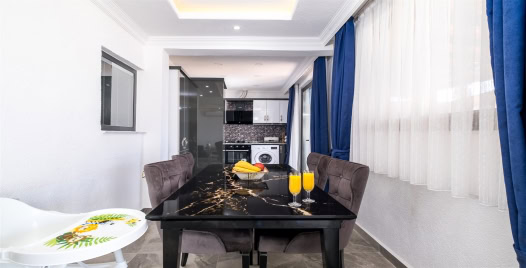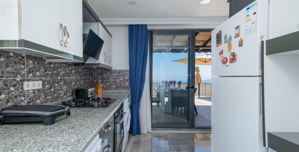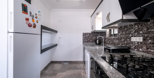 Mutfak : Modern Amerikan mutfak içerisinde buzdolabı, bulaşık makinası, fırın, ocak, tost makinası, yemek masası, yemek masası, yemek takımları, çatal ve bıçak takımları, tencere ve tava takımları, bardaklar bulunmaktadır.