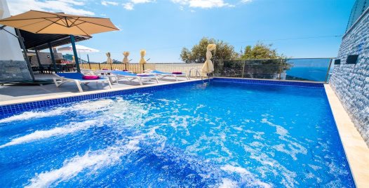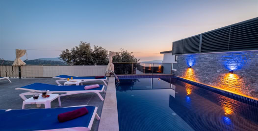 Villa Gülsüm Kalkan/ Kördere mevkiinde konumlanmış, doğa içerisinde, deniz manzaralı villa seçeneklerimizdedir. Villa Gülsüm, 3 yatak odalı, 6 kişi konaklama kapasitesine sahiptir aynı zamanda sauna, türk hamamı ve jakuzi bulunmaktadır. Modern ve konforlu dizayn edilen Villa Gülsüm'de ihtiyacınız olan her şey düşünülmüş olup sizlere sadece tatilin tadını çıkarmak kalıyor. Geniş aileler ve kalabalık arkadaş grupları için ideal bir seçenek olacaktır.