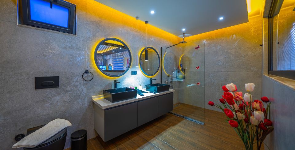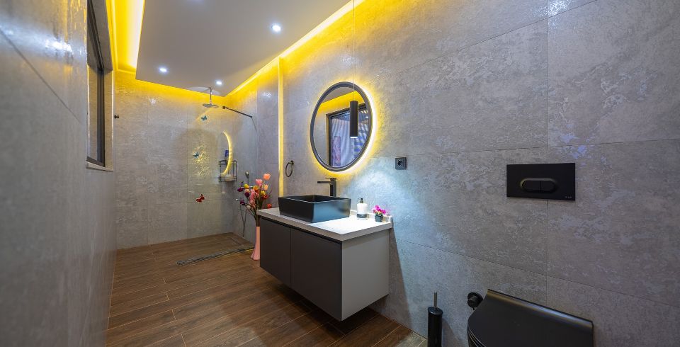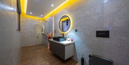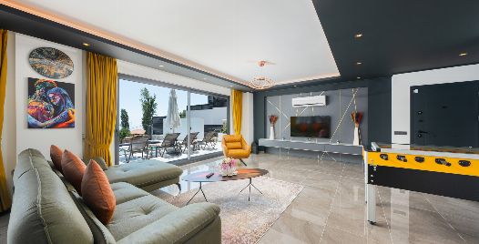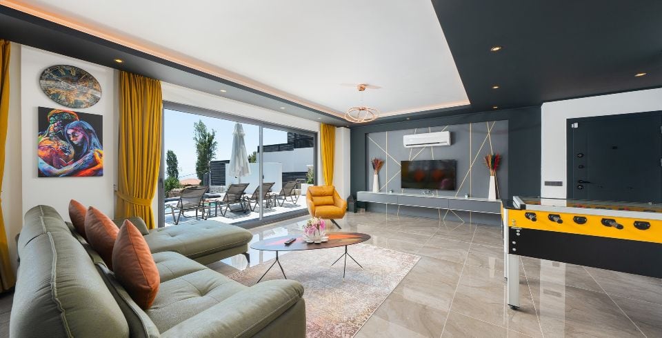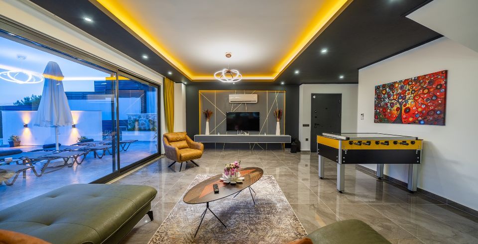 Salon : Salon içerisinde modern oturma grubu, uydu alıcı, LCD TV, internet için modem, klima, WC ve havuz terasına çıkış bulunmaktadır.
