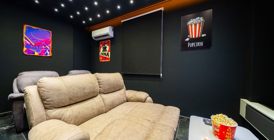 Sinema Odası: Büyük ekran LCD TV, ses sistemi, klima ve özel koltuk bulunmaktadır. (1.Kat)