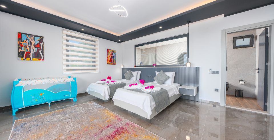1. Yatak Odası : Süit genç yatak odası olup, 2 adet tek kişilik yatak, komodin, makyaj masası, elbise dolabı, klima, LCD TV, berjer ve banyo/tuvalet bulunmaktadır.(Giriş Katı)