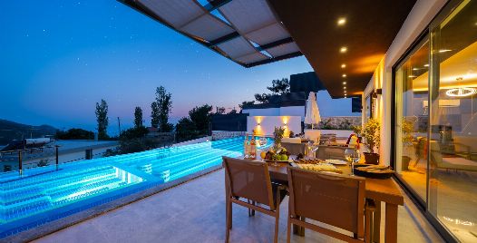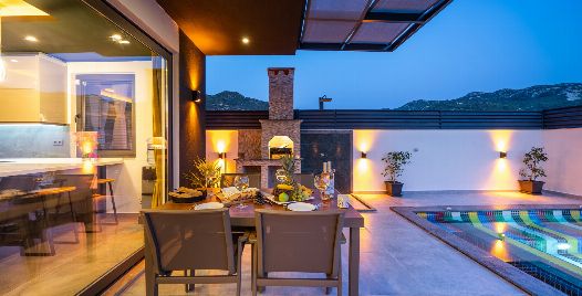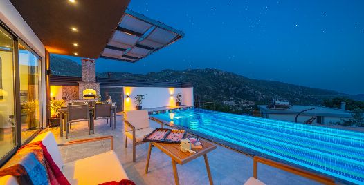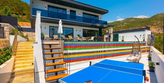 Dünyaca ünlü tatil beldesi Kalkan İslamlar bölgesinde bulunan kiralık yazlık villamız, Villa Güney 2021 yılında tamamlanmış olup siz değerli misafirlerimizin beğenisine sunulmuştur. Lüks kiralık villamızın 13 metre boyunda sonsuzluk havuzu ve özel bir havuz terası bulunmaktadır. Villamız, çekirdek aileler ve balayı çiftleri için oldukça ideal olup, 2 oda, 4 kişi kapasitelidir. 2 katlı modern mimaride olan muhafazakar konseptteki villamız doğa içerisinde olup siz ve sevdiklerinize huzur dolu bir tatil sunmaktadır. Özel yüzme havuzu kenarında güneşlenme terası, şezlong ve şemsiye, masa tenisi ve hamak mevcuttur. Bakımlı özel bahçede barbekü yer almakta ve misafirler nefis ızgaralar yaparak yemek ihtiyaçlarını karşılamaktadır. Villa dekorasyon eşyaları gibi bahçe dekorasyon eşyaları da villa misafirlerinin keyifle vakit geçirebilmeleri için zevkle seçilmiştir.