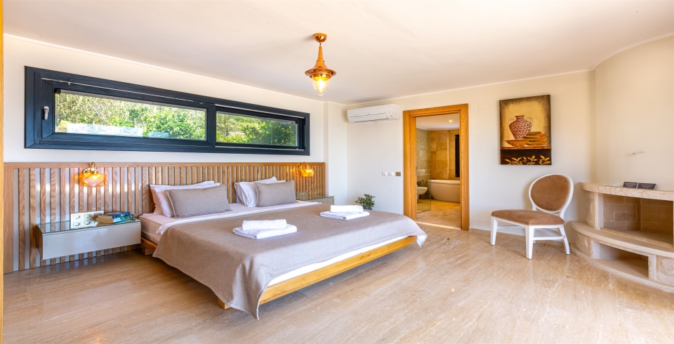 1. Yatak Odası : Süit oda çift kişilik yatak, komodin, klima, elbise dolabı, makyaj masası, banyo ve tuvalet bulunmaktadır.
