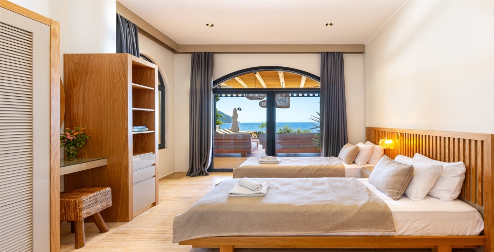 4. Yatak Odası : Süit oda tek kişilik 2 yatak, klima, makyaj masası, komodin, elbise dolabı, balkon, banyo ve tuvalet bulunmaktadır.