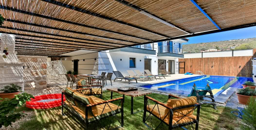 Kalkan Patara bölgesinde bulunan 2 yatak odalı 4 kişilik yeni yapılmış muhafazakar korunaklı villamız doğa manzarasına sahiptir. Villamızın bahçesinde salıncak ve oyun parkı bulunmakta olup villamız çift jakuzilidir. Tatil süreniz içersin de keyifli bir vakit geçirmenizi sağlayacaktır. Villamız Muhafazakar olup balayı tatili düşünen çiftlerimiz içinde oldukça uygun bir villa seçeneğimizdir.