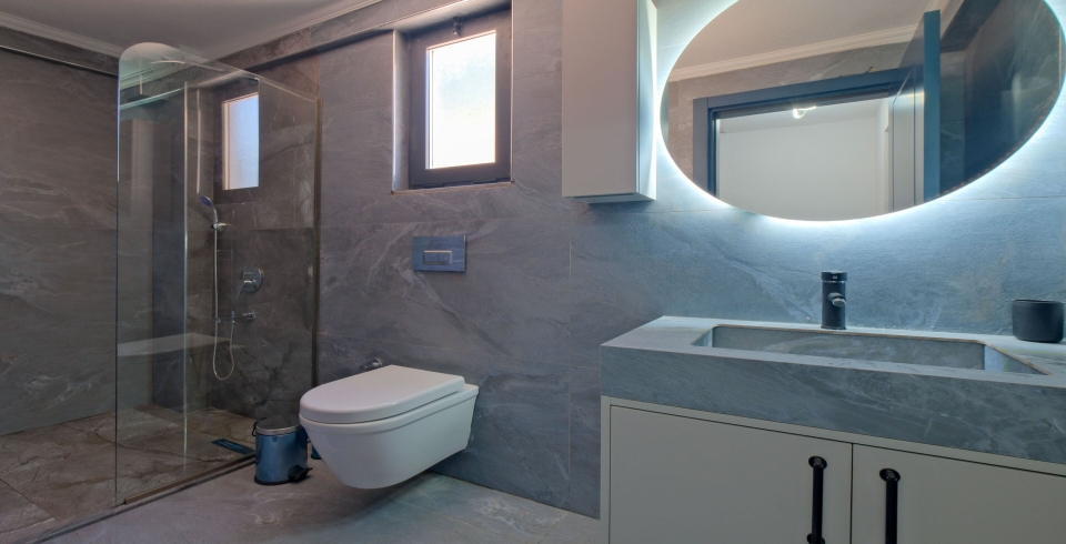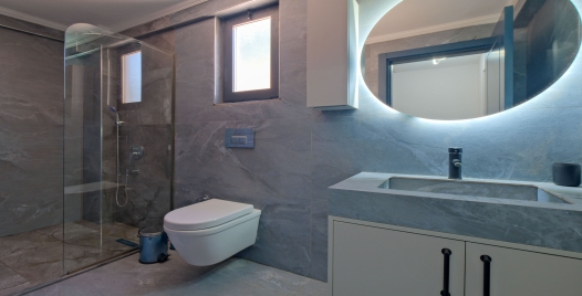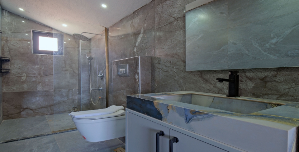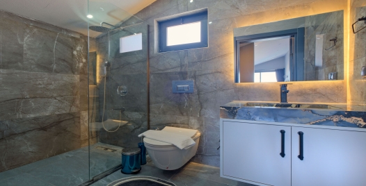 Açık özel havuzu ve havuz çevresindeki geniş terası, güneşlenme alanlarıyla birlikte dinlenme imkânı yaratır. Korunaklı havuz bölgesi, mahremiyet arayan konuklar için avantaj sağlar. Tam donanımlı mutfak; ocak, fırın, buzdolabı, mikrodalga ve mutfak gereçleri ile donatılmıştır ve yemek hazırlamayı kolaylaştırır. Oturma alanı, rahat mobilyalar, TV ve klima ile konfor sunar. Villanın verandası ve balkonları doğa manzaralı olup bahçe ve çevre ile görsel uyum sağlar.