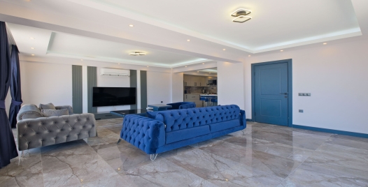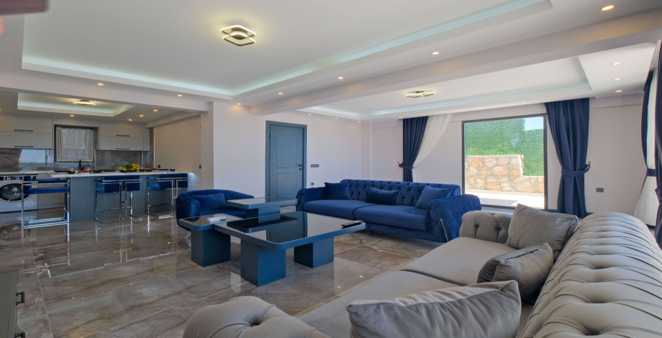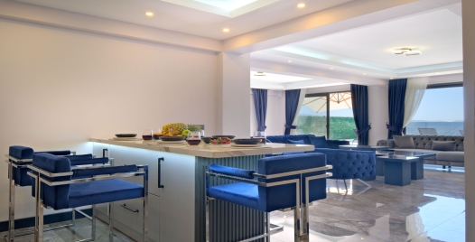 Salon: Özenle döşenmiş salon, modern koltuklar, 8 kişilik yemek masası, LCD TV ve klima bulunmaktadır.