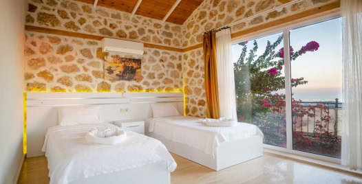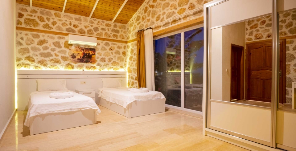 2. Yatak Odası: 2 adet tek kişilik yatak klima, komodin, elbise dolabı, makyaj masası, banyo ve tuvalet bulunmaktadır.