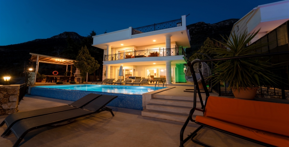 Panoramik deniz ve kalkan manzarasına karşı konumlanmış olan Villa Hira siz müşterilerimizi unutulmaz bir tatil için Kalkan Beldesine bekliyor. Bulunduğu konum itibarı ile tüm odalarından ve terasından muhteşem bir deniz ve doğa manzarasına sahiptir. 4 yatak odalı 8 Kişilik lüks villamızda özel havuz, ve bahçesi bulunmaktadır. Villamız dan Kalkan merkeze ve plajlarımıza ulaşım gayet kolay olmakla birlikte yakın bir mesafede bulunmaktadır. Villamızın bulunduğu konumda çok sayıda alternatif villa seçeneği de bulunmakta olup kalabalık olarak gelecek aileler içinde diğer villa seçenekleri satış temsilcilerimizden bilgi alabilirsiniz.