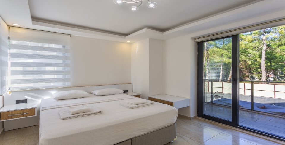 1.Yatak Odası: Çift kişilik yatak, klima,elbise dolabı, makyaj masası,tuvalet ve banyo bulunmaktadır.