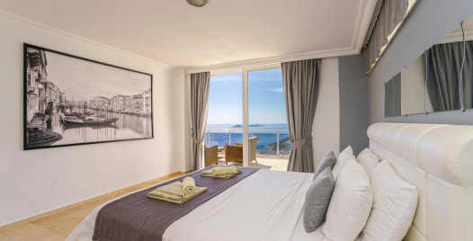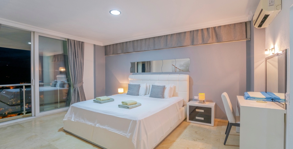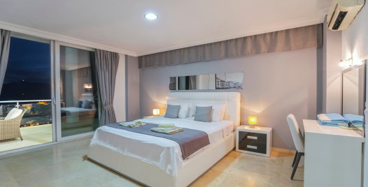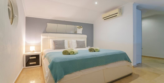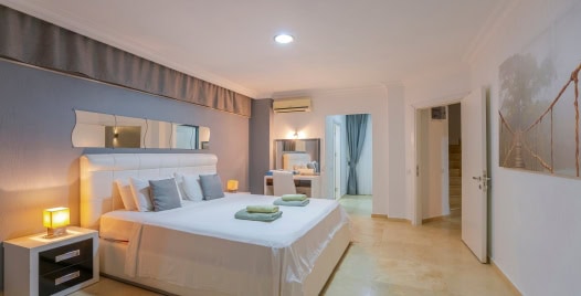 3. Yatak Odası: Çift kişilik süit yatak odası, klima, makyaj masası, elbise dolabı, komodin, banyo ve lavabo bulunmaktadır.