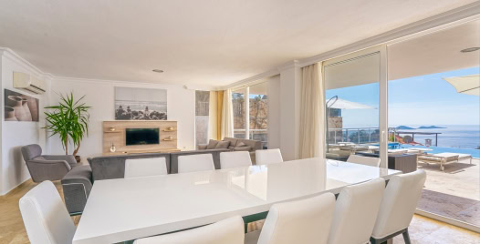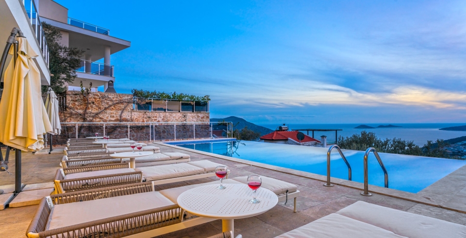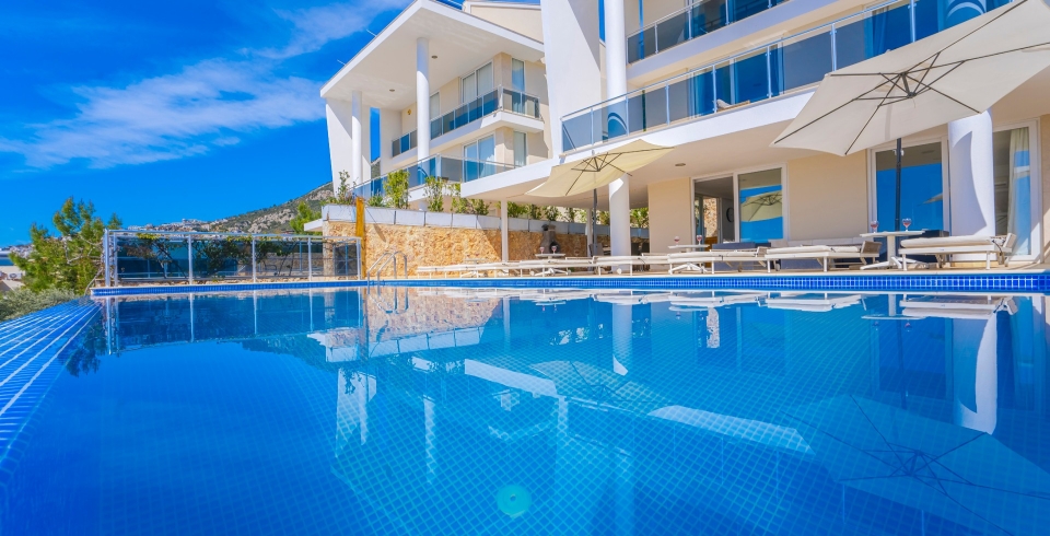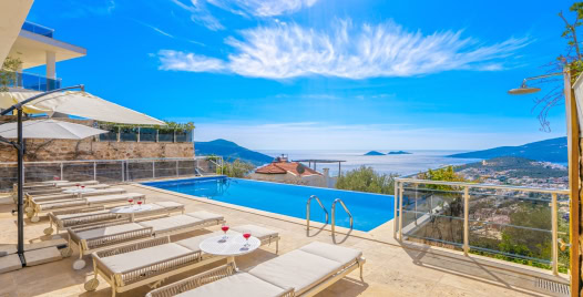 Kalkan Kızıltaş mevkisin de bulunan 5 yatak odalı kiralık yazlık tatil villası Villa Horizon muhteşem manzarası ile sizi kendine hayran bırakacak. Villamız toplam 10 kişilik konaklama kapasitesine sahip olup kapalı otoparkı da bulunmaktadır. Kalabalık arkadaş grupları ve geniş aileler için son derece uygun olan villamız kapalı otopark bölümünde spor salonu da bulunmakta olup masa tenisi, bilardo masası ve spor aletleri bulunmaktadır.