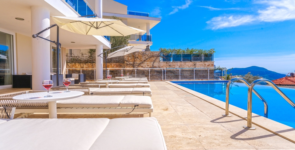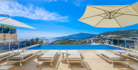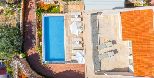 Havuz ve Bahçe: Kiralık yazlık tatil villamızın Başından deniz ve Kalkan manzarasını rahat bir şekilde görebilirsiniz. Havuz terasında özel yüzme havuzu, şezlonglar, güneş şemsiyesi, masa ve sandalyeler, mangal bulunmaktadır.