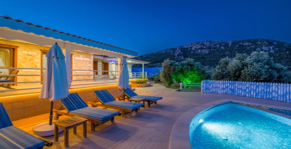 Kalkan’ın huzur dolu Üzümlü bölgesinde yer alan Villa Hüma, doğa manzarası, lüks detayları ve eğlence dolu olanaklarıyla unutulmaz bir tatil deneyimi sunuyor. 3 yatak odası ve 6 kişilik kapasitesi, modern tasarımı ve konforlu yaşam alanlarıyla aileler ve arkadaş grupları için ideal bir konaklama imkânı sağlıyor. Özel yüzme havuzu, gözlerden uzak bir tatil sunarken, jakuzisi günün yorgunluğunu atmanız için mükemmel bir fırsat sunuyor.
