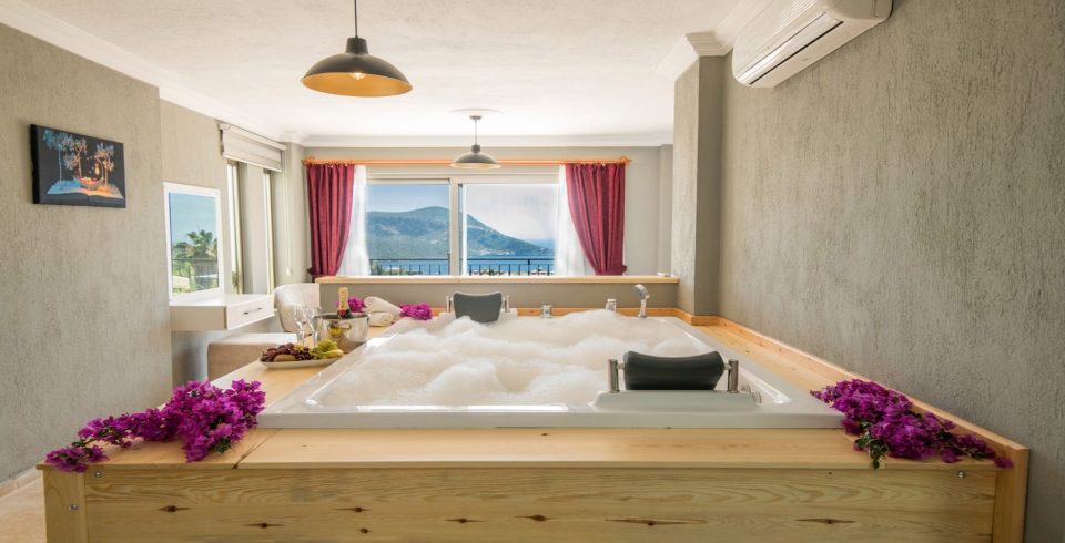 Villa Hüsam, Kalkan’ın Ortaalan bölgesinde deniz ve doğa manzarasına sahip, lüks ve konforlu bir tatil villasıdır. Dört yatak odası ve dört banyosu ile sekiz kişilik kapasiteye sahiptir; kalabalık aileler veya arkadaş grupları için ideal bir seçimdir. Villada iki ayrı jakuzili oda yer almakta olup, her yatak odasında klima ve özel banyo bulunur. Sinema odası ve oyun odası ekstra eğlence imkânları sunar.