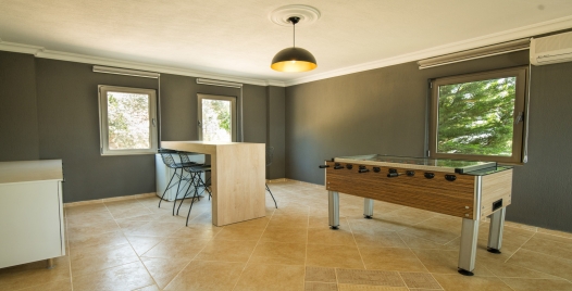 Açık teraslı özel yüzme havuzu (yaklaşık 8 × 4 metre, derinliği 1,60 m) şezlong ve gölgelikli alan ile dinlenmek için uygundur. Havuz terasından manzara izlemek, sabah kahvesini bahçede yapmak gibi keyifler için atmosfer sunar. Tam donanımlı Amerikan mutfak, bulaşık makinesi, fırın, mikrodalga ve tüm pişirme gereçleriyle tatil boyunca konfor sağlar.