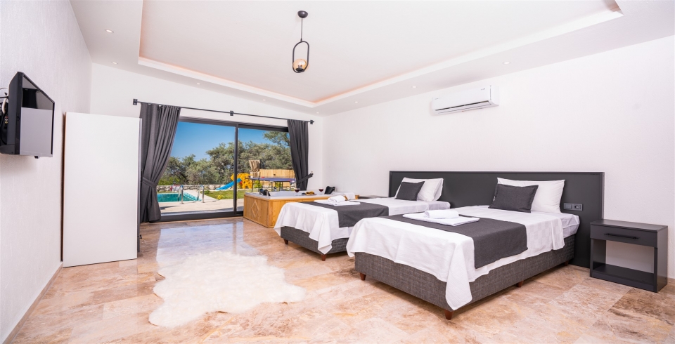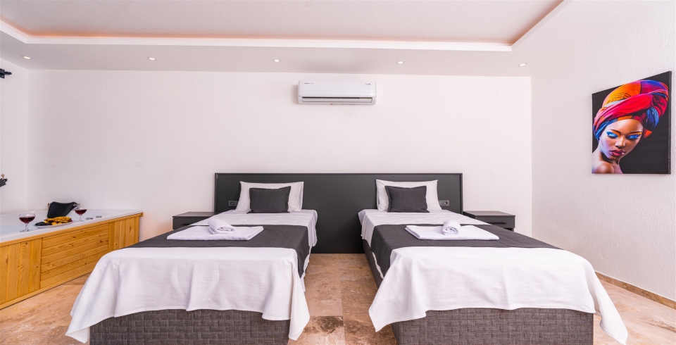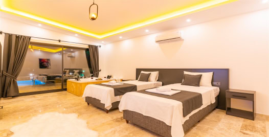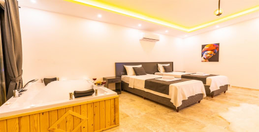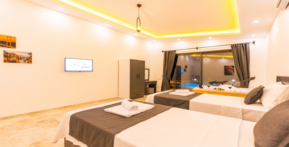 2.Yatak Odası: 2 adet tek kişilik yatak, komodin, klima, makyaj masası, TV, elbise dolabı, jakuzi, banyo ve lavabo bulunmaktadır.