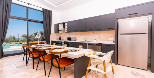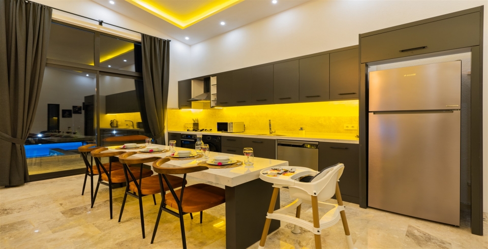 Mutfak: Villamızın mutfağında buzdolabı bulaşık makinası, çamaşır makinesi,4'lü ocak, kettle, kişilik yemek takımı bulunmaktadır.