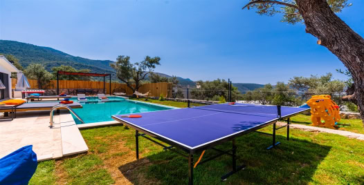 Havuz ve Bahçe: Havuz ve bahçesi korunaklı olup dışarıdan gözükmemektedir. Özel yüzme havuzu , şezlong, şemsiye, bahçe yemek masası, langırt, masa tenisi, çocuk oyun alanı ve barbekü bulunmaktadır.