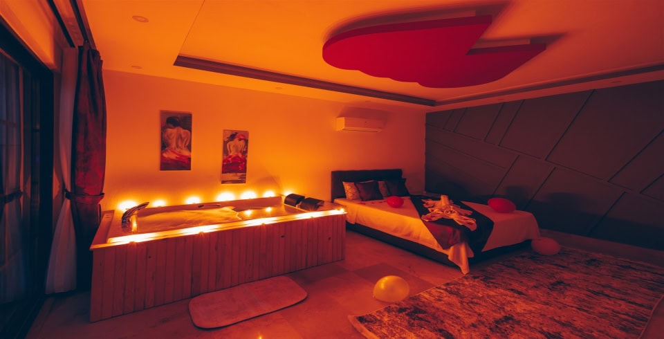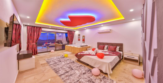 1. Yatak Odası : 1 adet çift kişilik yatak, elbise dolabı, makyaj masası, komodin, jakuzi, banyo ve tuvalet bulunmaktadır.