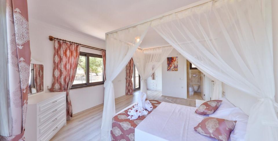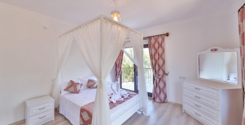 3. Yatak Odası : Çift kişilik yatak, Komodin, Klima, Elbise dolabı, Makyaj masası, Banyo ve Balkona çıkış bulunmaktadır.