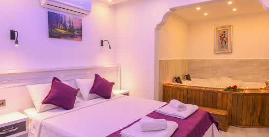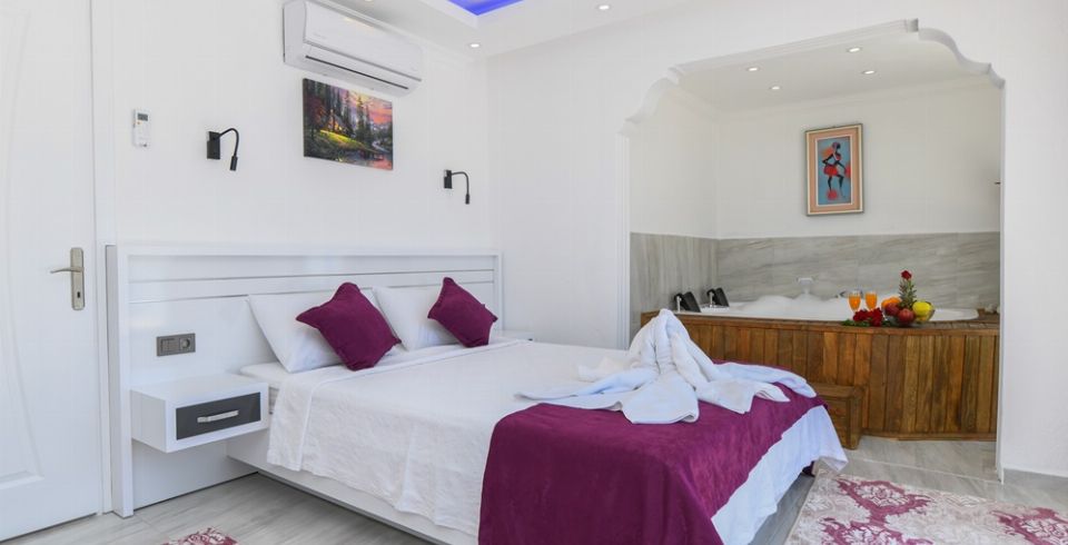 1. Yatak Odası : 1 adet çift kişilik yatak, klima, jakuzi, komodin, elbise dolabı, makyaj masası, banyo ve lavabo bulunmaktadır.