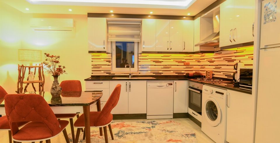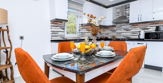 Mutfak : Villamızın geniş Amerikan mutfağı ile sizlere kendi evinizin mutfağı gibi hissettirecek. Ayrıca mutfakta klima, bulaşık makinası, buzdolabı, çamaşır makinası, mikrodalga fırın, tost makinası, ekmek kızartma, su ısıtıcısı, fırın, 4'lü ocak seti ve 4 kişilik geniş yemek masası ile tava tencere vb. mutfak araç gereçlerini kullanma fırsatını sizlere sunuyoruz.