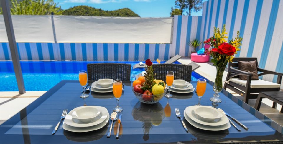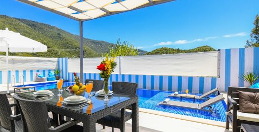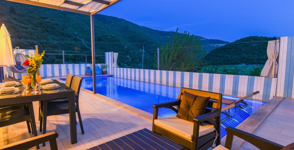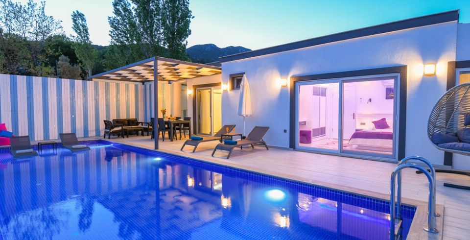Villa İkizce, Kalkan Ekizce bölgesinde bulunuyor olup 4 kişilik konaklama kapasitesi ile 2 yatak odasına sahiptir. Doğa içerisinde mavi konsept ile dizayn edilmiş villamız aynı zamanda muhafazakâr aileler için uygun olarak düzenlenmiştir. Aynı zamanda ekonomik olan villamız hem hesaplı hem de çok şık bir tasarıma sahiptir. Balayı çiftlerinin de gözdesi olan villamız, özel bir tatil ve harika anılar biriktirmek için uygun kiralık villamızdır. Muhafazakâr villamızda bulunan geniş ve özel yüzme havuzu ile rahatça yüzebilir, suyun tadını çıkartabilir aynı zamanda bahçede bulunan şezlonglarda güneşlenerek, güneşin tadını çıkartabilirsiniz. Villa içerisindeki odada bir şezlong bulunuyor olup jakuzinin tadını çıkartabilirsiniz. Bahçede keyifli vakitler geçirebilmeniz için terasta birde salıncak bulunmaktadır. Villa İkizce, değerli müşterilerini bu yazda misafir etmek için bekliyor.