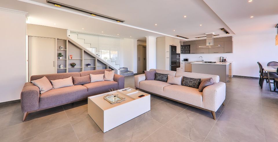 Salon : Salonda klima uydu alıcı, TV, DVD Player, oturma grubu, çocuk yatağı, çocuk koltuğu, lavabo yer almaktadır. Salon havuz katındadır. En üst katta dinlenmek ve güneşlenmek için çok geniş bir seyir terası daha vardır. Bu alanda da oturma gurubu ,masa ve sandalye bulunur.