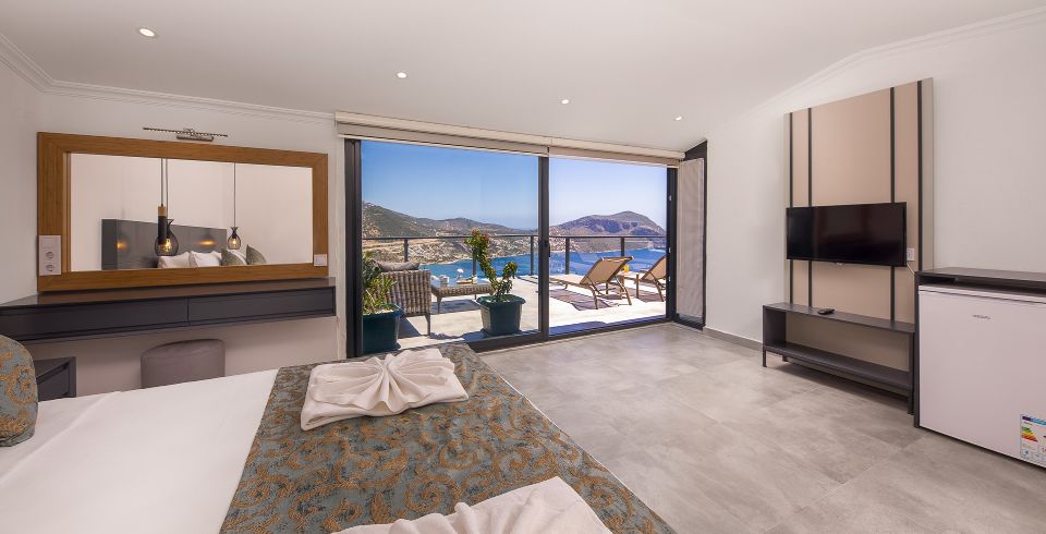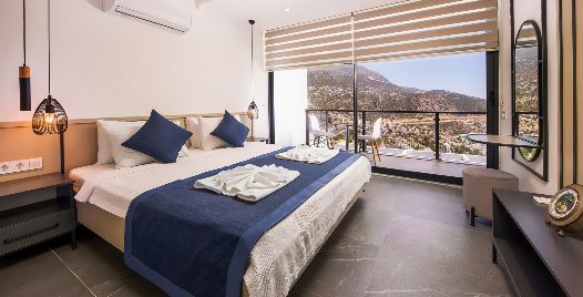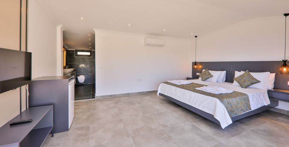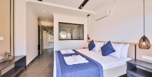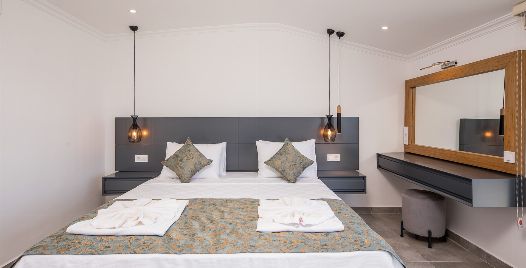 5. Yatak Odası : Süit yatak odası çift kişilik konfor yatak, klima, makyaj masası, gardırop, banyo-WC ve balkon yer almaktadır.