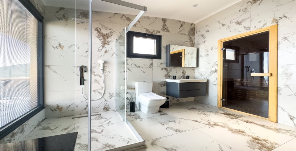 4.Yatak Odası: Lüks Süit Ebeveyn odası, Panoramik Kalkan, Deniz ve Doğa manzaralı olup, Banyo, Sauna, Jakuzi, Şezlong ve oturma grubu mevcuttur.
