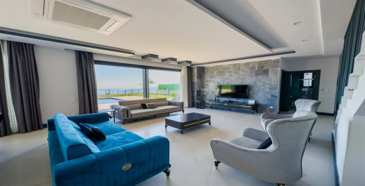 Salon: Oturma grubu, Uydu TV (LCD), Klima, 8 kişilik yemek masası, Havuz kenarına çıkış bulunmaktadır.