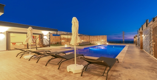 Havuz ve Bahçe :Villamız korunaklı olduğundan dışarıdan kesinlikle görünmemektedir. 1.55 metre sığ özel yüzme havuzunun içinde şezlong bulunan bahçemizde ekstra şezlonglar, şemsiye, yemek masası, salıncak, barbekü ve oturma alanı bulunmaktadır.