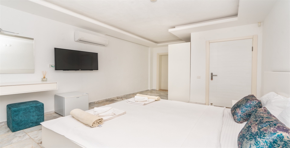 Villanın tüm odaları konforlu yataklar, özel banyolar ve deniz manzaralı balkonlarla donatılmıştır. Ana yatak odasında yer alan jakuzili banyo, konuklara ekstra bir rahatlık sunarken; diğer odalar da ferahlığıyla ön plana çıkar.