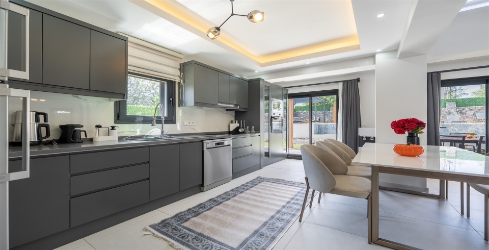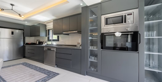 Mutfak: Açık planlı mutfak, 8 kişi ve daha fazla kişiye yetecek kadar mutfak malzemeleri, buzdolabı, fırın, ocak, mikrodalga fırın, bulaşık makinesi, çamaşır makinesi, tost makinesi, kettle ve çaydanlık bulunmaktadır..