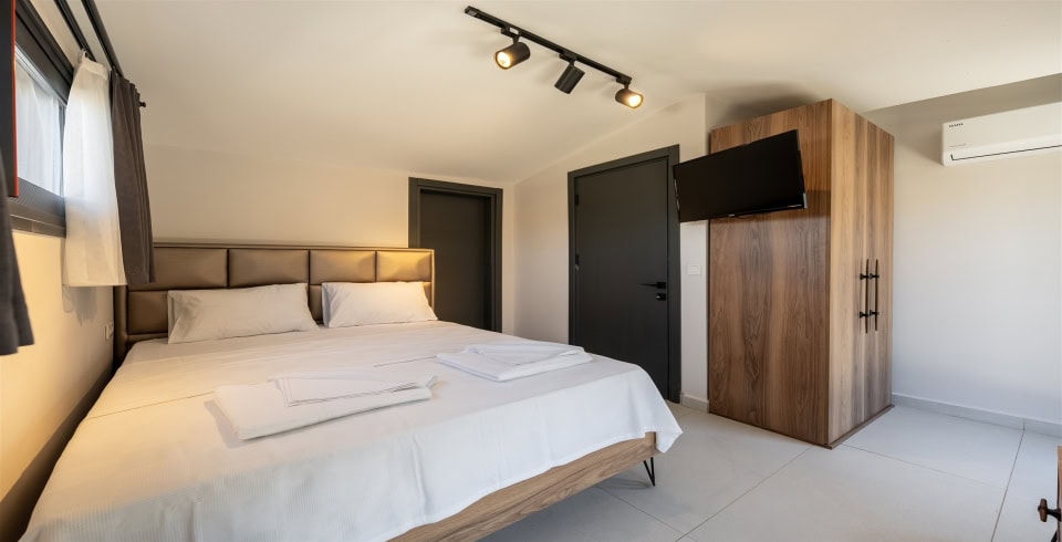1.Yatak Odası: Çift kişilik yatak, klima,TV, elbise dolabı, makyaj masası,tuvalet ve banyo bulunmaktadır.