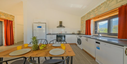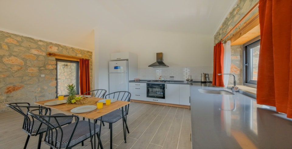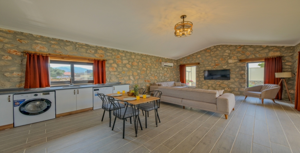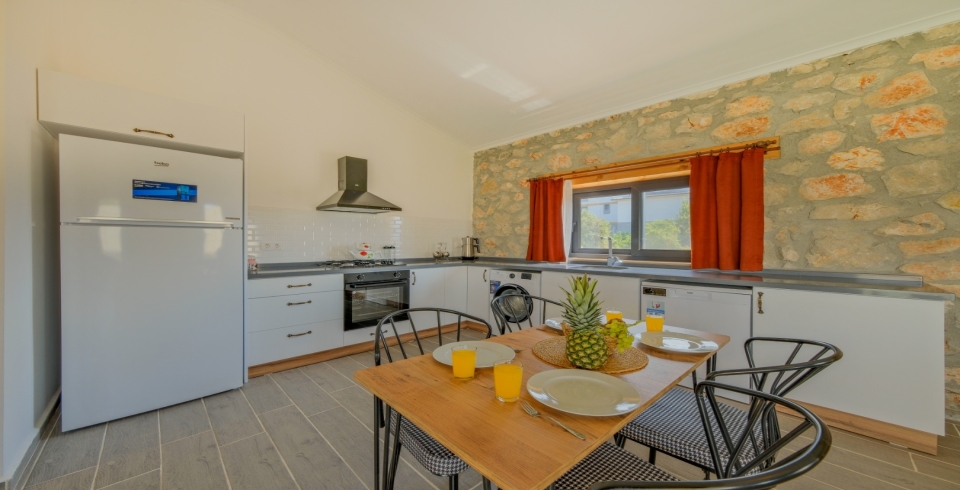 Mutfak : Villamızın Amerikan mutfağı ile sizlere kendi evinizin mutfağı gibi hissettirecek. Ayrıca mutfakta klima, bulaşık makinası, buzdolabı, çamaşır makinası, mikrodalga fırın, Su ısıtıcısı, fırın, 4`lü ocak seti ,yemek masası ile tava tencere vb. mutfak araç gereçlerini kullanma fırsatını sizlere sunuyoruz.
