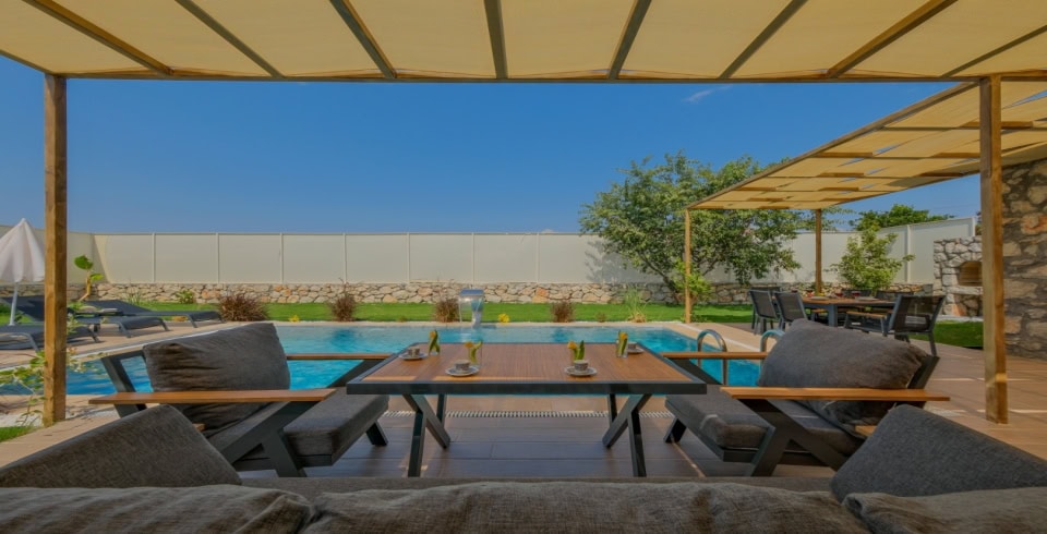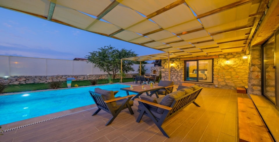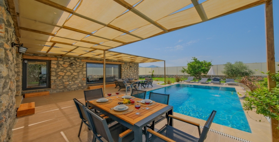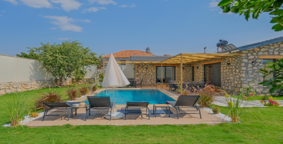 Villa İris, Fethiye’nin Menteşeoğlu mevkiinde, doğa ile iç içe konumuyla sakin ve keyifli bir tatil için ideal bir seçenektir. 2 yatak odası ve 4 kişilik kapasitesiyle çekirdek aileler ve balayı çiftleri için tasarlanmış bu özel villa, korunaklı havuz terası sayesinde mahremiyet arayan misafirler için de uygundur. Geniş bahçesi, modern tasarımı ve konforlu detaylarıyla hem dinlenmek hem de eğlenceli anlar yaşamak isteyenler için mükemmel bir kaçış noktasıdır.