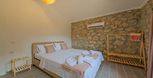 1. Yatak Odası : 1 adet çift kişilik yatak, klima, komodin, elbise dolabı, makyaj masası, banyo ve lavabo bulunmaktadır.