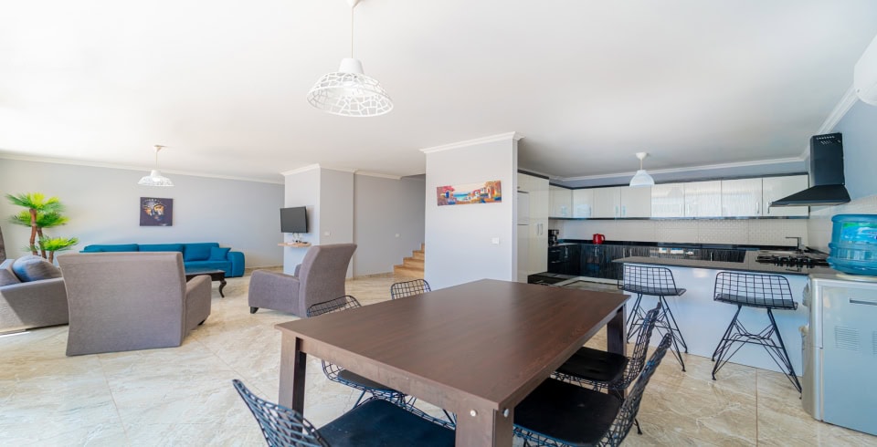 Mutfak : Villamız Amerikan mutfağında bulaşık makinası, buzdolabı, çamaşır makinası, ekmek kızartma makinası, yemek takımı, tencere tava takımı, çatal bıçak takımı, kettle, 4'lü ocak, mikrodalga fırın bulunmaktadır.